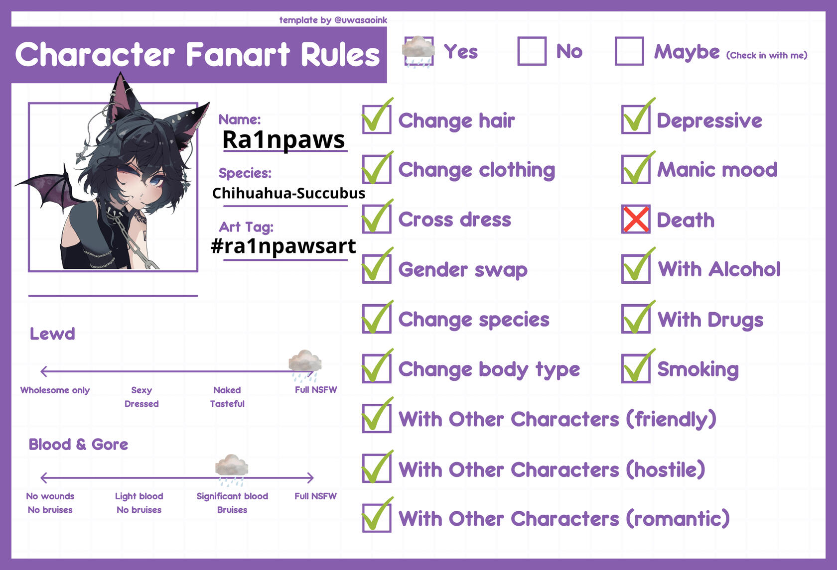 I am so happy and thankful you are interested in making fanart of me! I have some simple rules when it comes to fanart that I will try my best to make clear in a simple allow and do not allow, if you have any questions do not hesitate to reach out 🖤